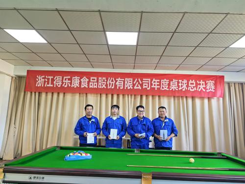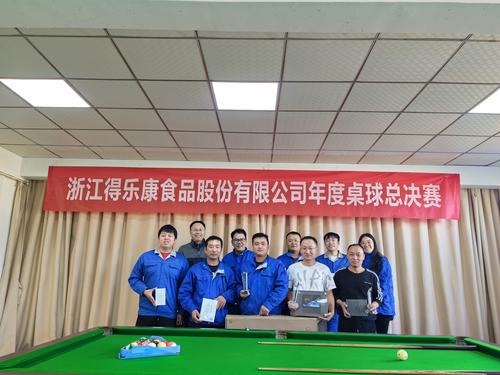 2023年11月18日,浙江得乐康食品股份有限公司在员工活动中心举行了第二届桌球比赛。 本次活动为单人赛,分为淘汰赛、复活赛、决赛,遵循中式八球新国标规则,共20名员工报名参加。参赛选手们通过抽签的方式进行淘汰赛和复活赛的1vs1对决,经过几天时间的自由比拼,最终胜出的八位选手进入决赛环节。